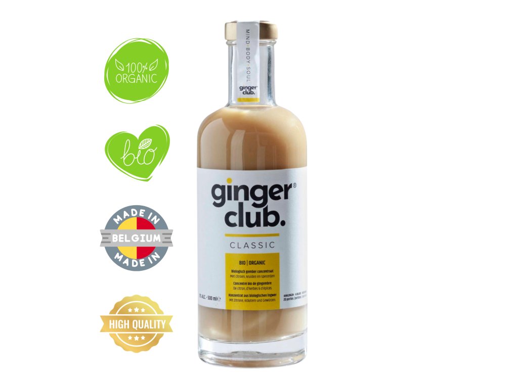 Ginger Club je prémiová belgická značka organických zázvorových koncentrátů, kterou založila Lieselot Dumoulin s jednoduchým cílem: nabídnout zdravou, chutnou a praktickou alternativu k běžným slazeným nápojům, alkoholu a kávě.