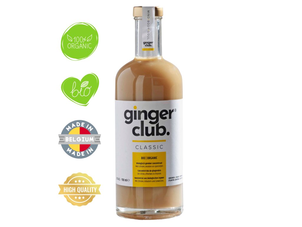Ginger Club je prémiová belgická značka organických zázvorových koncentrátů, kterou založila Lieselot Dumoulin s jednoduchým cílem: nabídnout zdravou, chutnou a praktickou alternativu k běžným slazeným nápojům, alkoholu a kávě.