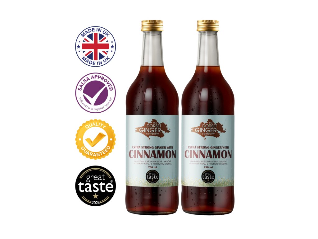 EXTRA silný nealkoholický zázvorový nápoj Dorset Ginger Extra Strong Cinnamons příchutí skořice s vysokým obsahemKONCENTROVANÉ zázvor 0,33 % as certifikovánoSALSA. Pro ty, kteří opravdu milují zázvorové nápoje.