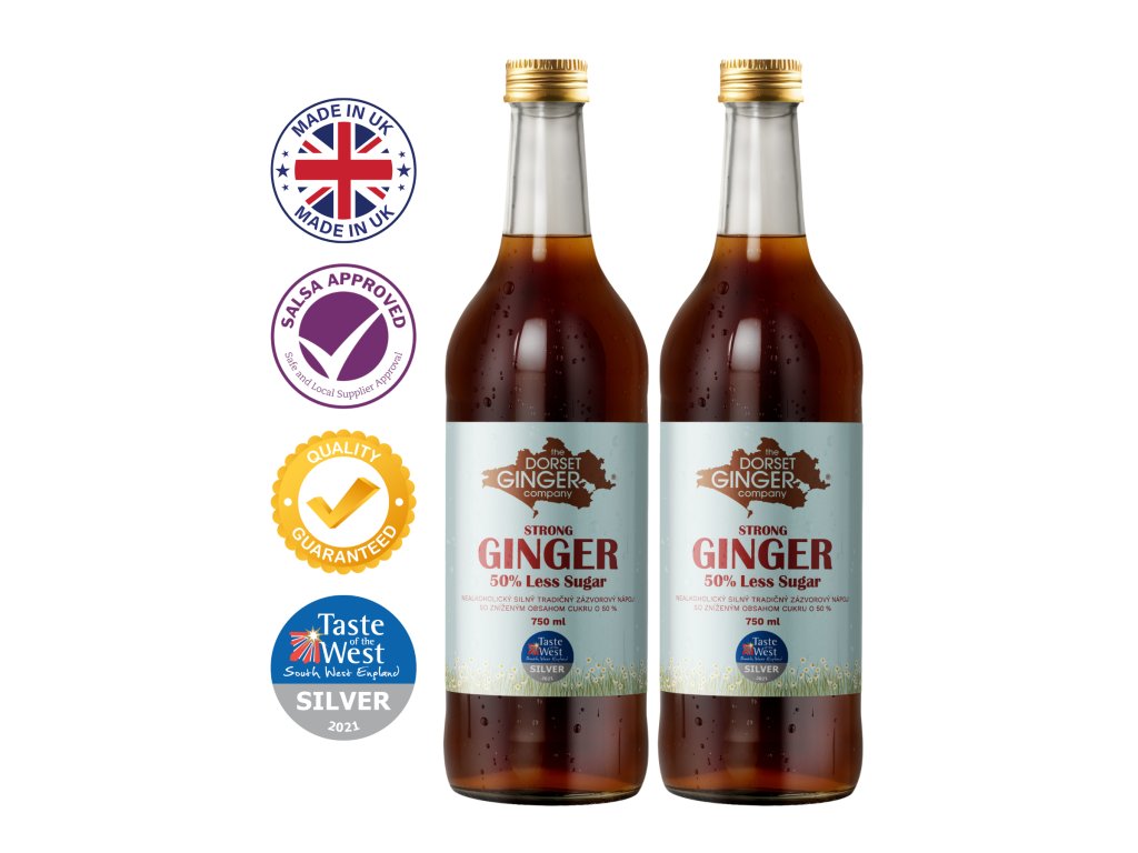 Silnější dorset Ginger Originální verze se sníženým obsahem cukru o 50 %. S vysokým obsahemKONCENTROVANÉginger0,22 % as ccertifikátSALSA.